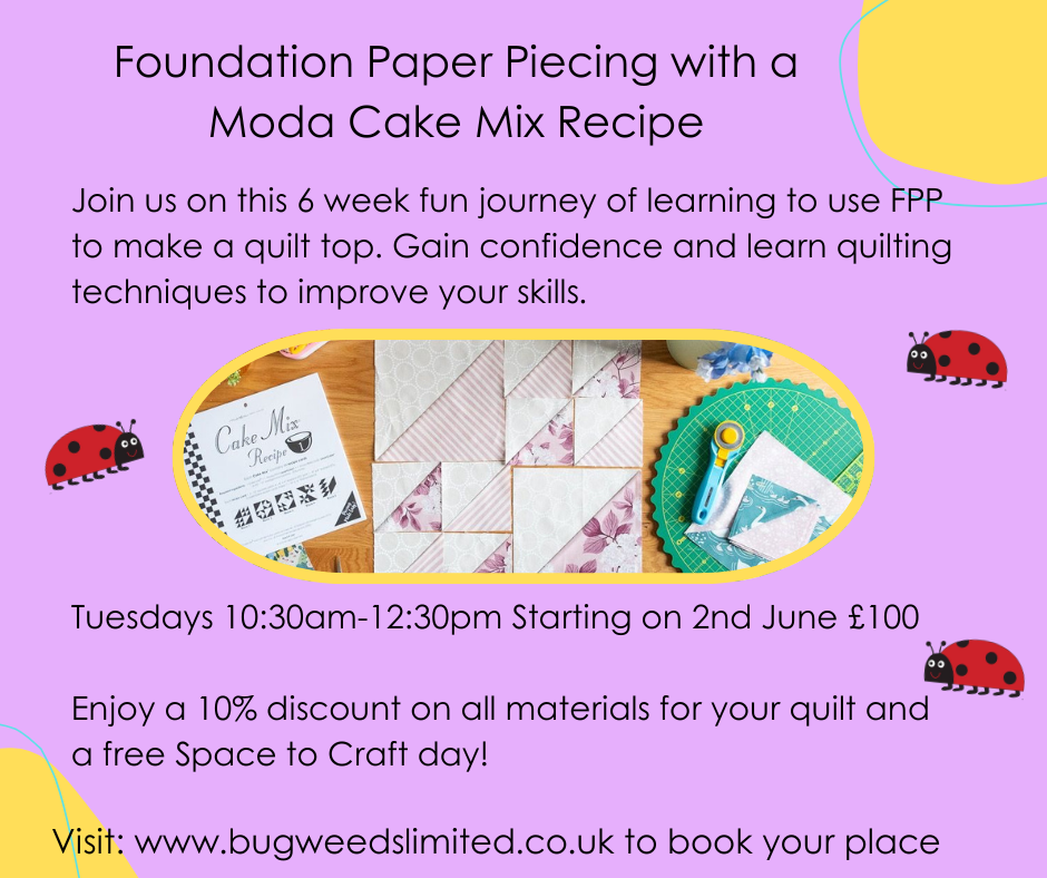 Bugweed's Limited Bugweed's Limited, Unit 3, Marrtree Business Park, Stirling Road, York, North Yorkshire, United KingdomThis is a 6 week workshop, with one session each week. If you cannot attend them all, please let us know and we will try and accommodate you as much as possible! Always wanted to make an FPP quilt but didn’t know where to start? This friendly, hands-on 6-week course is the perfect introduction to […]
