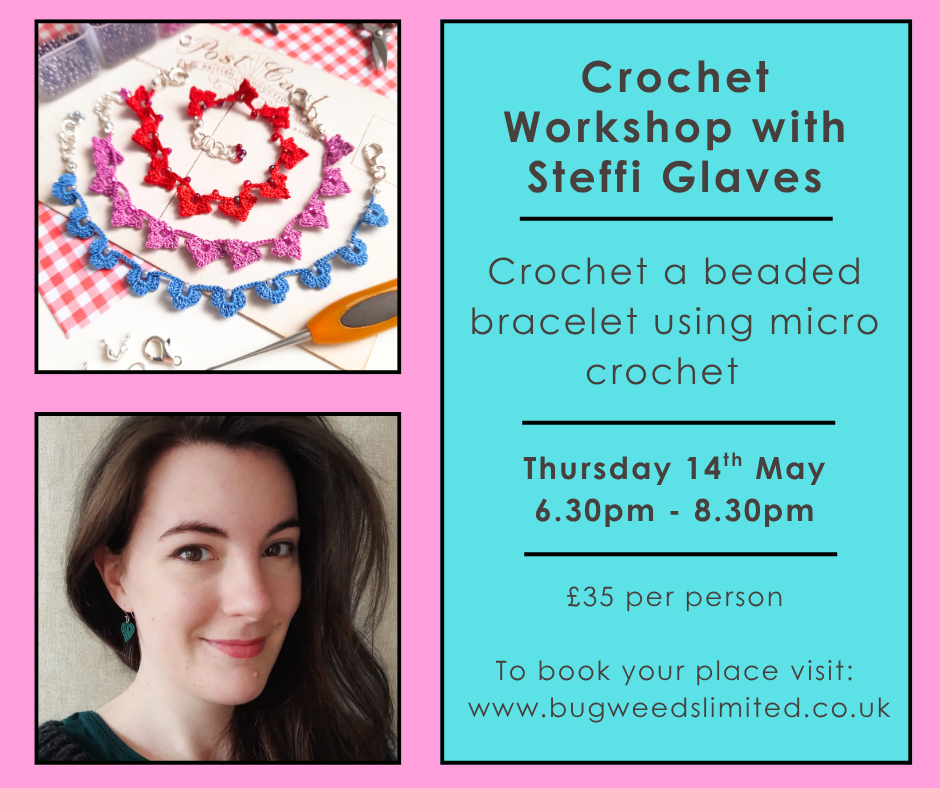 Bugweed's Limited Bugweed's Limited, Unit 3, Marrtree Business Park, Stirling Road, York, North Yorkshire, United KingdomOur wonderful friend Steffi Glaves is back at Bugweed's for a brilliant workshops in micro crochet. It's tiny time again! Test your skills and learn some new ones on this exciting, creative workshop! In this crochet session, Steffi will walk you through crocheting super small to make a dainty petal beaded bracelet using tiny stitches, […]