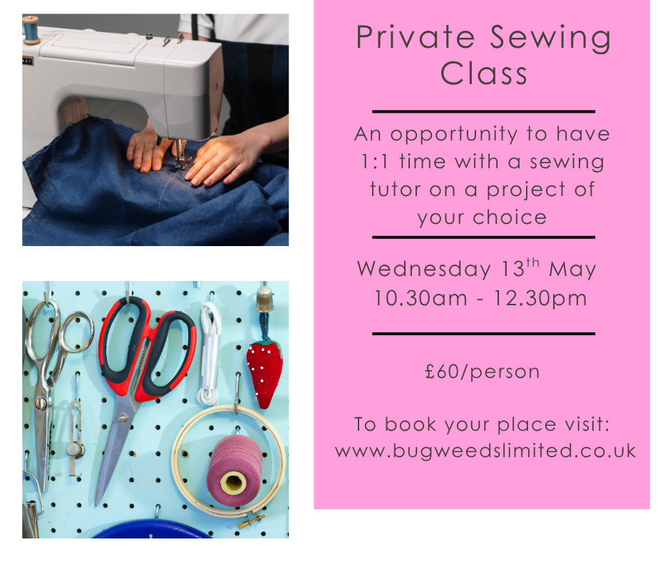 Bugweed's Limited Bugweed's Limited, Unit 3, Marrtree Business Park, Stirling Road, York, North Yorkshire, United KingdomPrivate Sewing Workshop Do you have a project you are stuck on and need some guidance? Are you desperate to learn a new skill but feel as though you would learn more in a 1:1 session? Well this offering from Bugweed's is for you! Come and enjoy 2 hours of 1:1 tutoring time with an […]