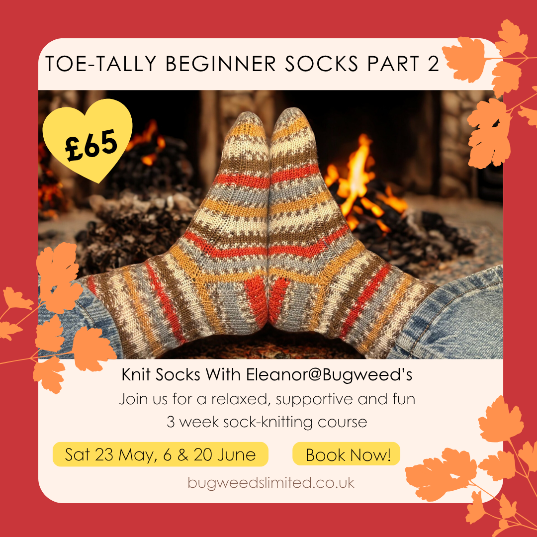 Bugweed's Limited Bugweed's Limited, Unit 3, Marrtree Business Park, Stirling Road, York, North Yorkshire, United KingdomThis course is a series of 3 workshops. It is important to attend each one as the skills will be added to each session. Welcome to Toe-tally Beginner Socks with Eleanor! We are so excited to bring you the second instalment of our beginners sock-knitting course where you will have chance to further develop your […]
